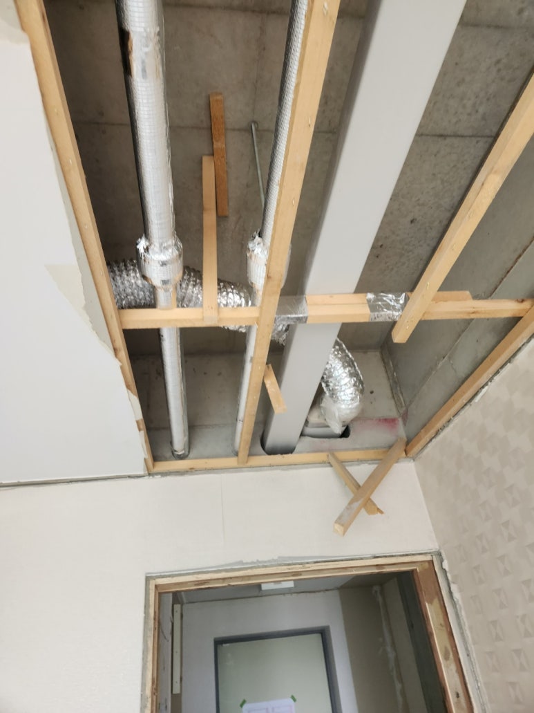 구축 아파트의 경우 천장 마감면과 그 사이 공간이 15cm~7cm 밖에 안되는 경우도 많이 있습니다.
